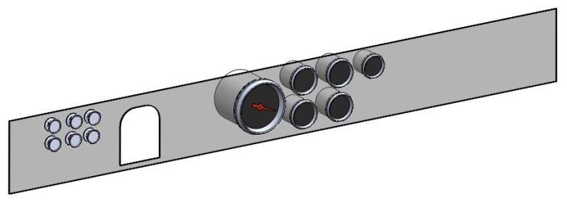 Here's a couple pictures of the first layout that I'm thinking of. (the speedo's right edge is right on the dash's centerline.)