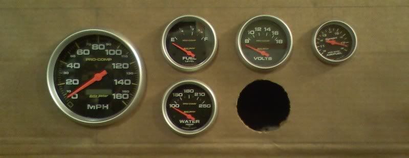 I have all my gauges (except my oil pressure which I have to exchange because I ordered the wrong one) so I started trying to figure out what kind of layout I want to do with my new dash.