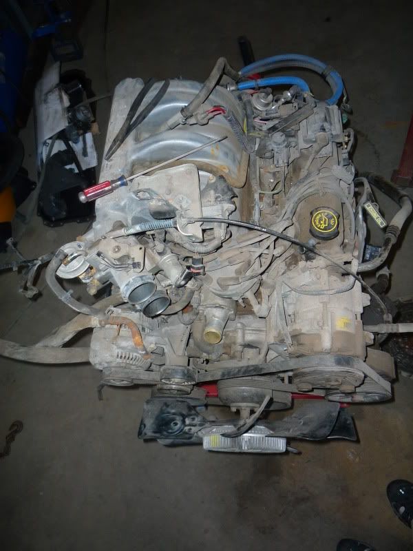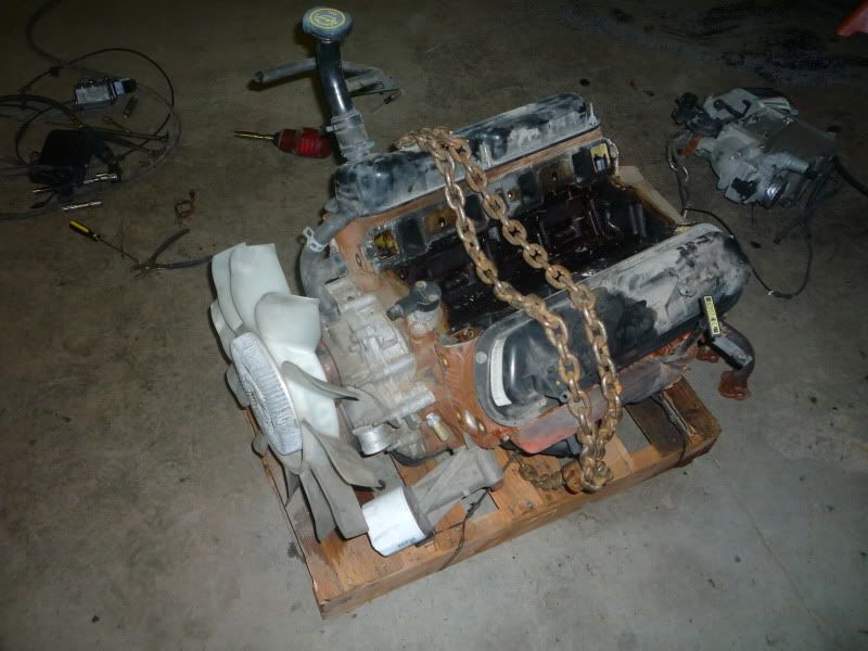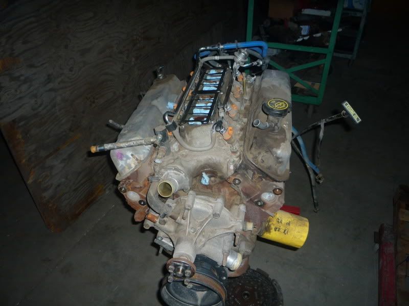 I have everything disconnected from the current motor, except the transmission, so next step will be to take off the old front end and pull the old motor.