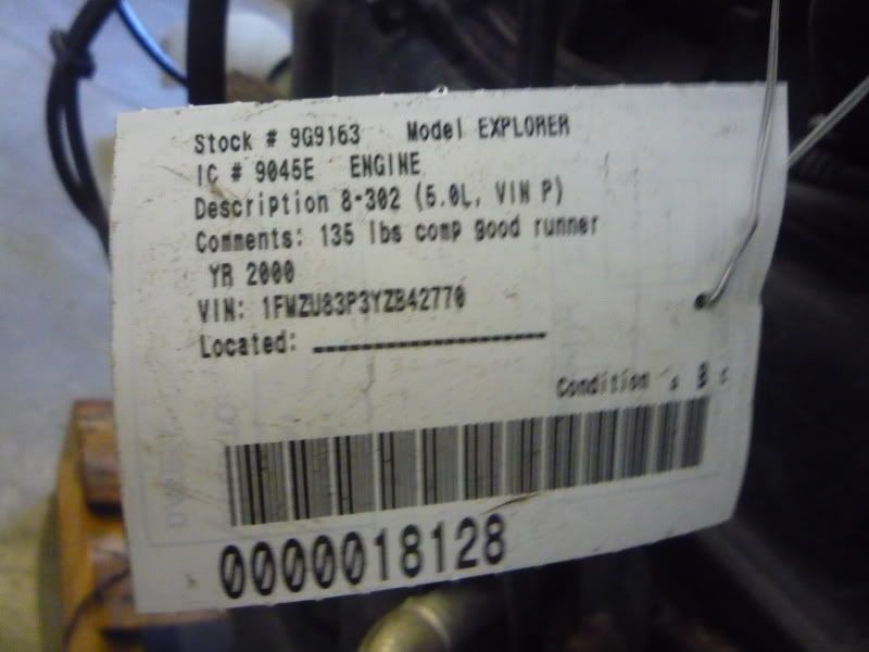 2000 Ford Explorer 5.0L – 124K miles (parts motor)