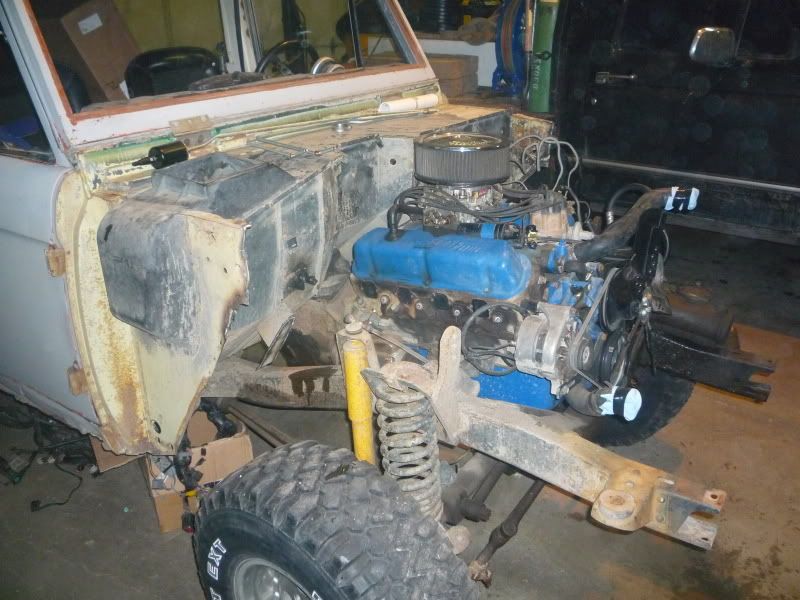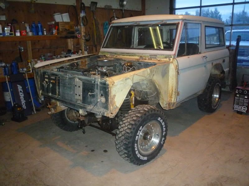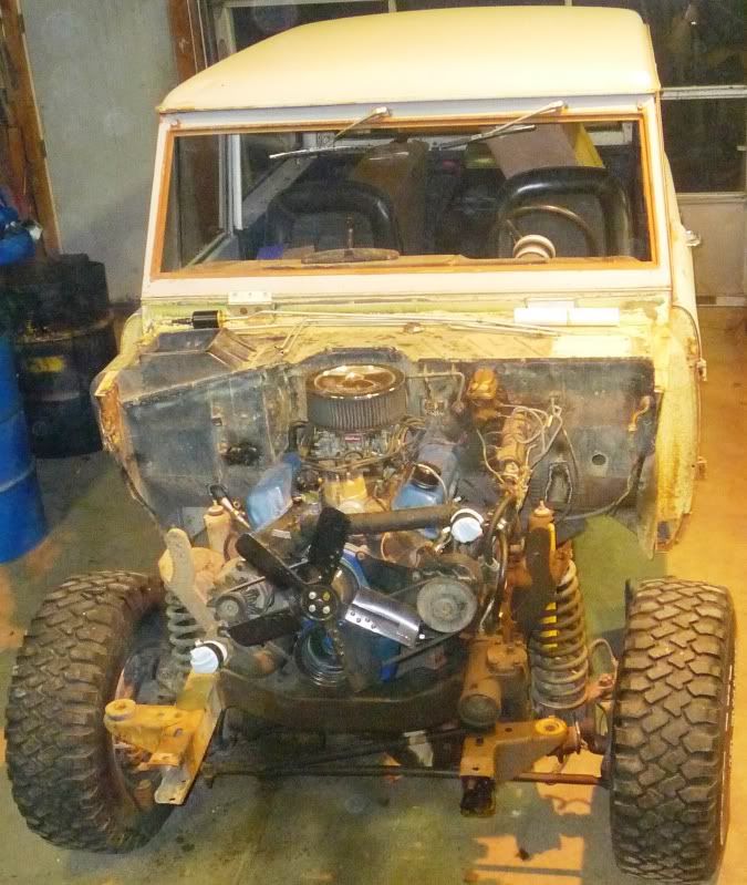 So I stopped by Mike's Off Road last Friday and talked with Mike (I actually lived down the road from him for several years and bought this bronco from him). He has a few parts broncos sitting around, so he told me to come out and get what I needed. I took about 3 hours on Saturday pulling the front end off a '66. It's actually spot welded to the firewall in 4 different places, so I took a sawzall and cut it off. I'll just butt-weld to install it, to make it a little easier. After I got it out I asked him what he wanted for it, and he told me I could have it since I took the time to pull it out. He said he just doesn't have time to pull stuff like that, so it's not worth much to him. SCORE!! (I'll get some pictures of the new front end up too.)
