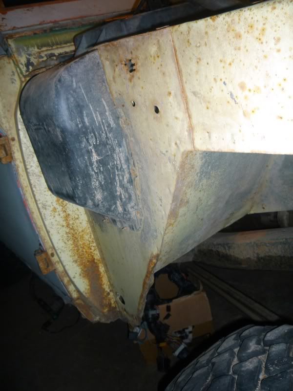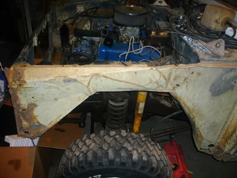 First thing I did was buy some 35” tires for it. It didn’t take long to stuff them in the rear fenders and bust up the fiberglass flares. After that I removed the flares (along with the gallon of bondo used to mold them into the fenders)